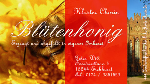 ...fehlt nur noch eine artneutrale gelbe Blütenunterlage (ich fand gelb zu rot recht passend) ...auf der Etikette. Na und das Rot gliedert sich ja an die Homepage an - ist sozusagen die Überleitung dazu ;-) und sollte nicht die Aussage Honig(Biene) vom Kloster verdecken ..